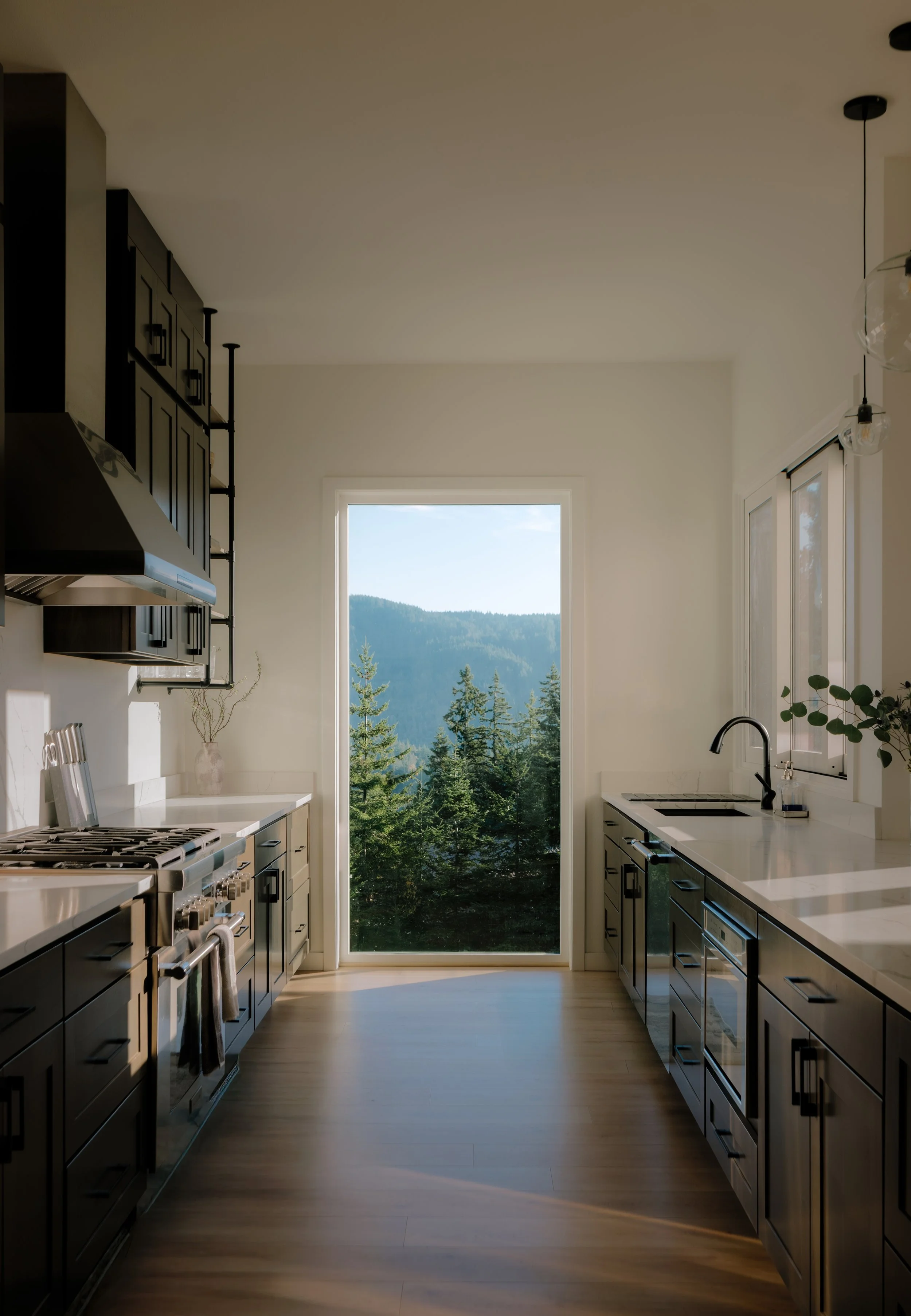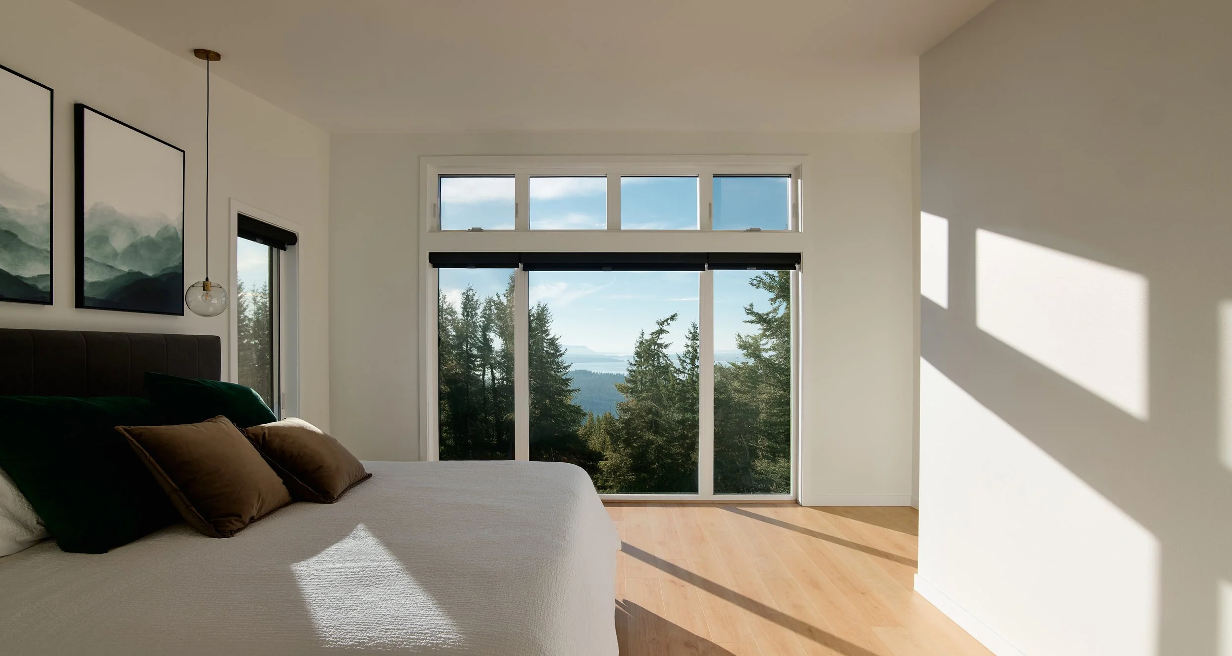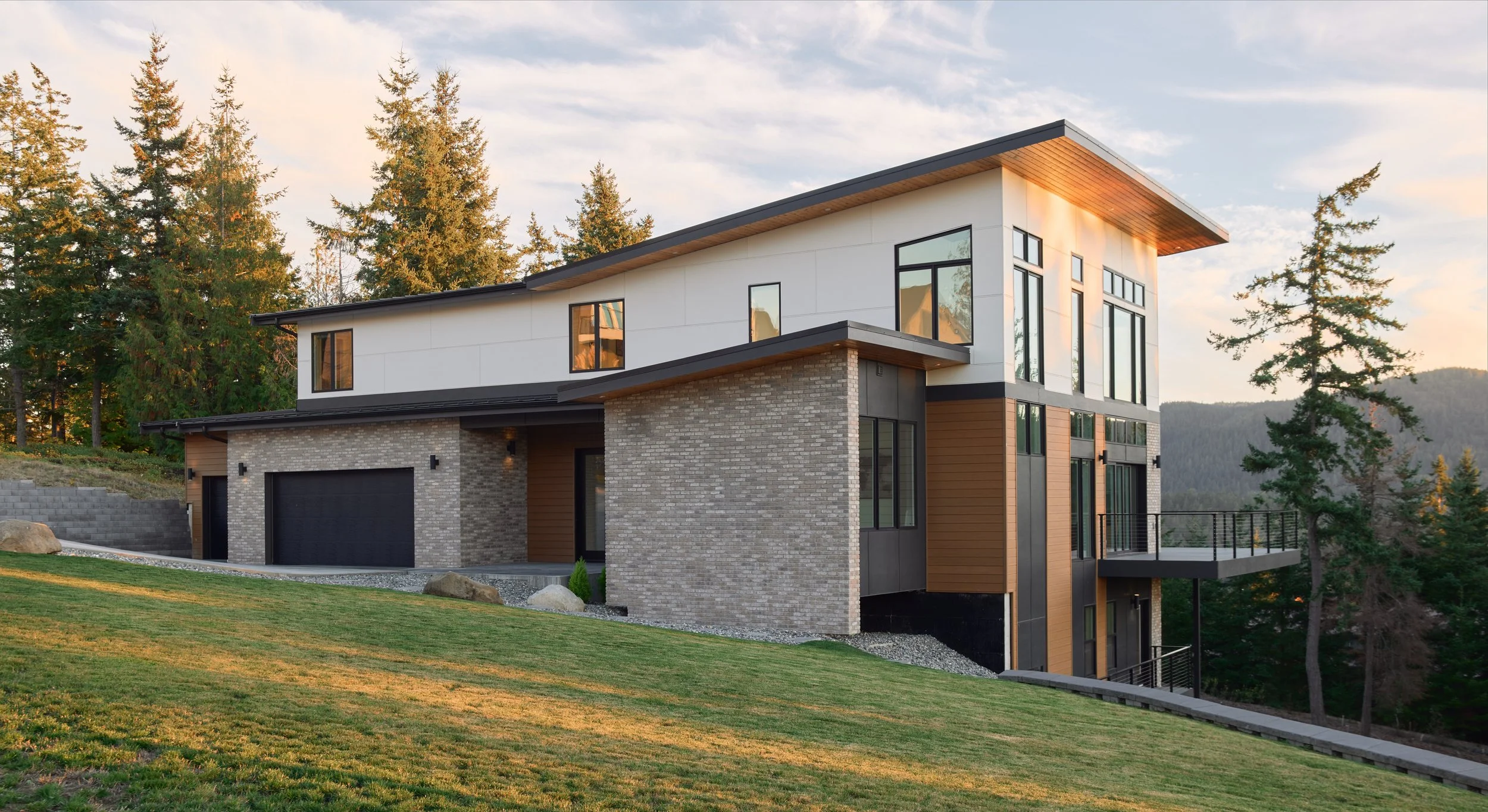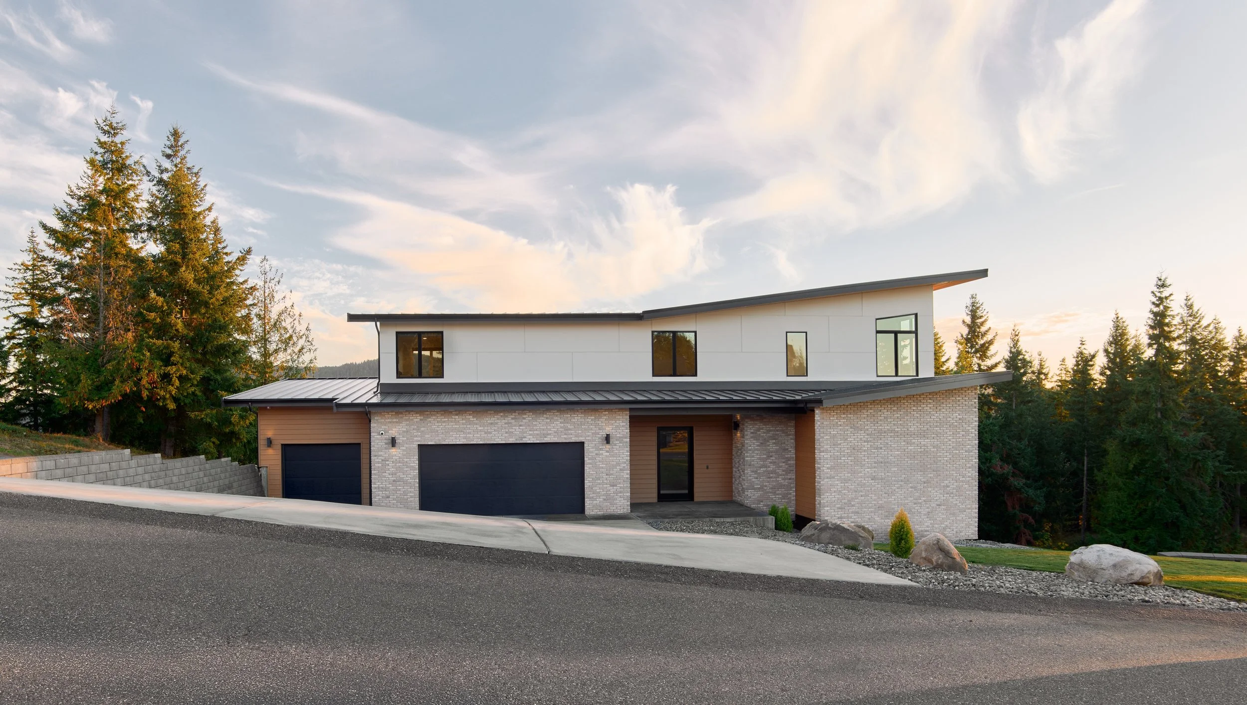 The project site for this new residence was challenging on many fronts. The home was designed to accommodate the view corridor restrictions and existing wetlands on the property while maximizing the view of Bellingham Bay. Traditional material elements are encased in a modern form and each room has a unique view.