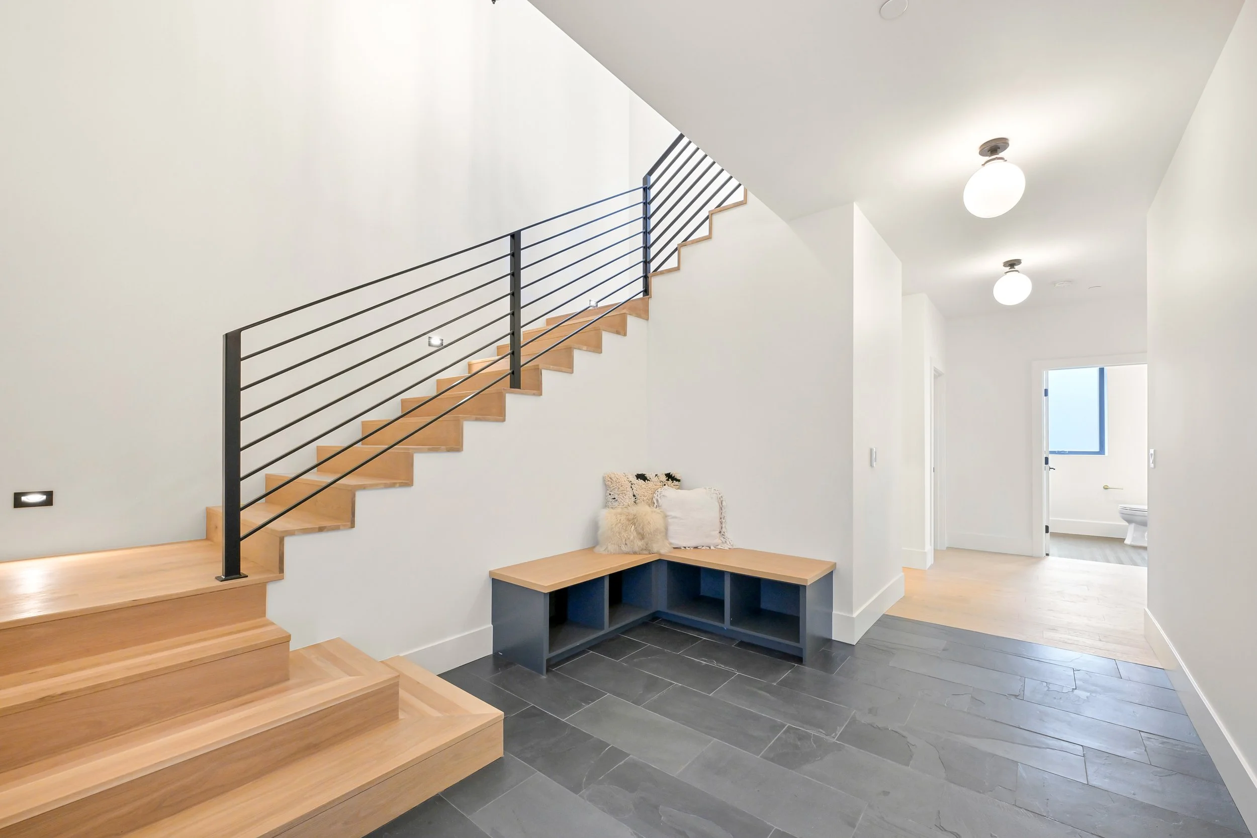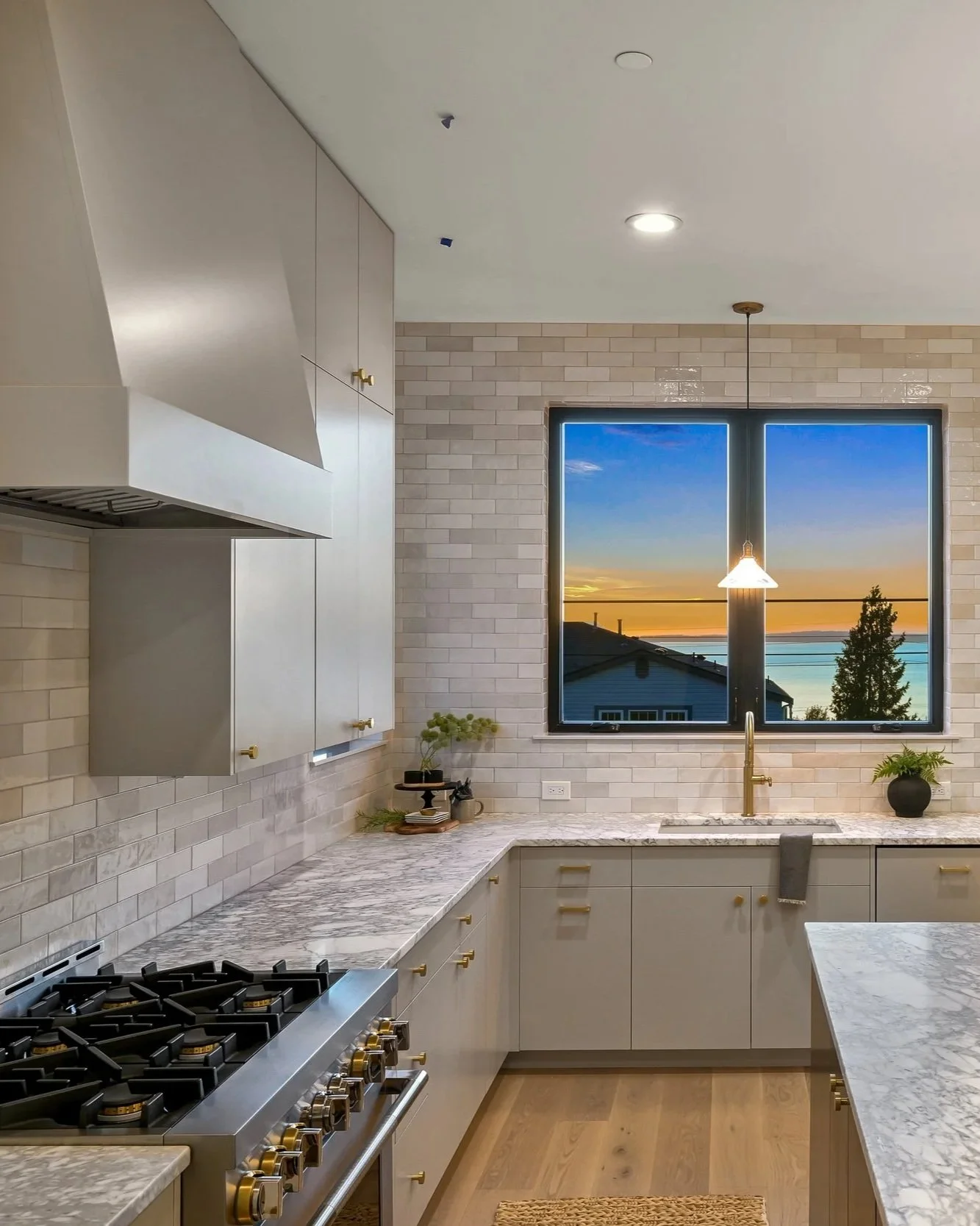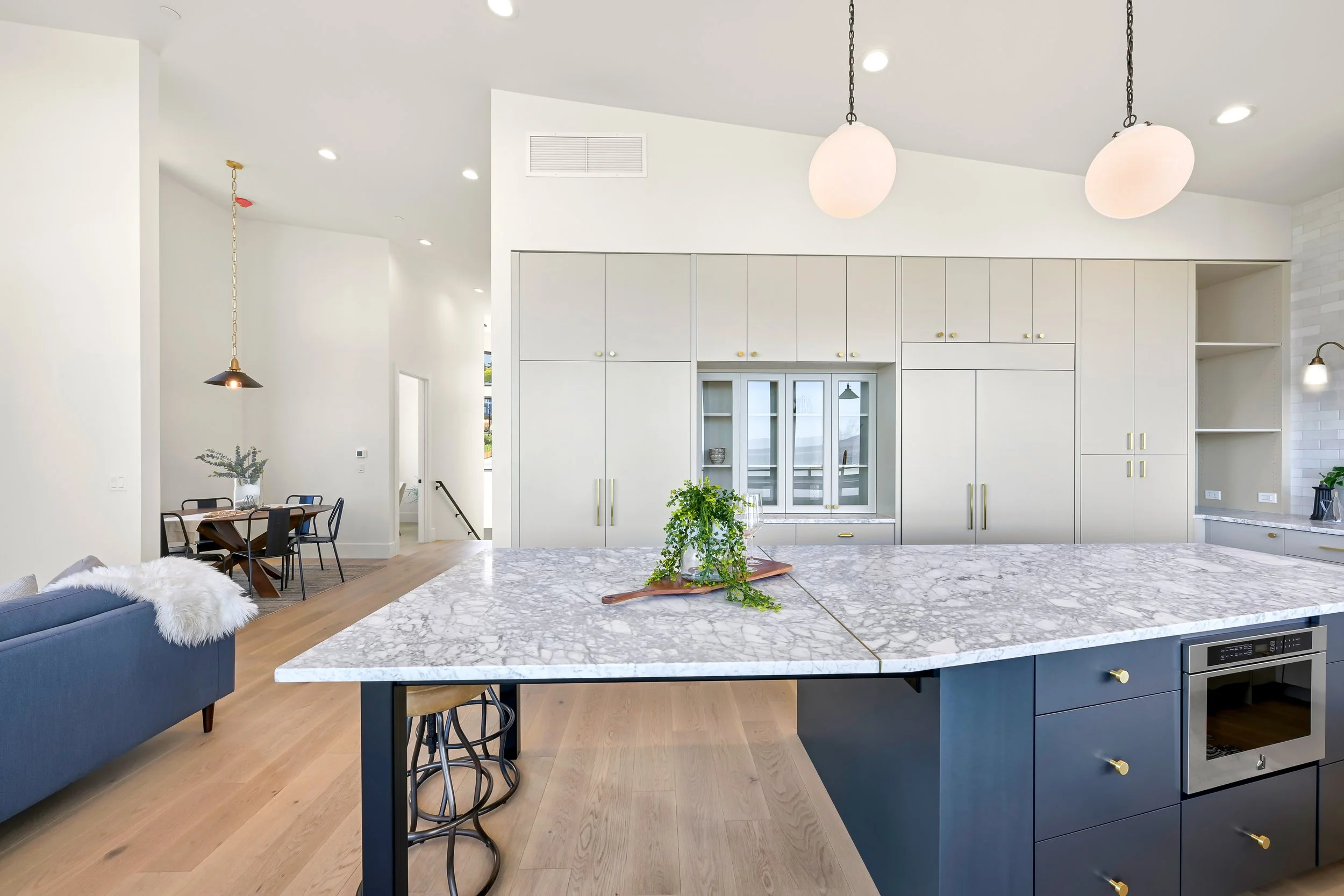 Situated with a prime view of Bellingham Bay, this two-unit condo building was designed to maximize the west facing views. The penthouse unit features large glass doors and a unique canted wall while the lower unit features a large living area with three bedrooms. Designed with timeless, modern materials.